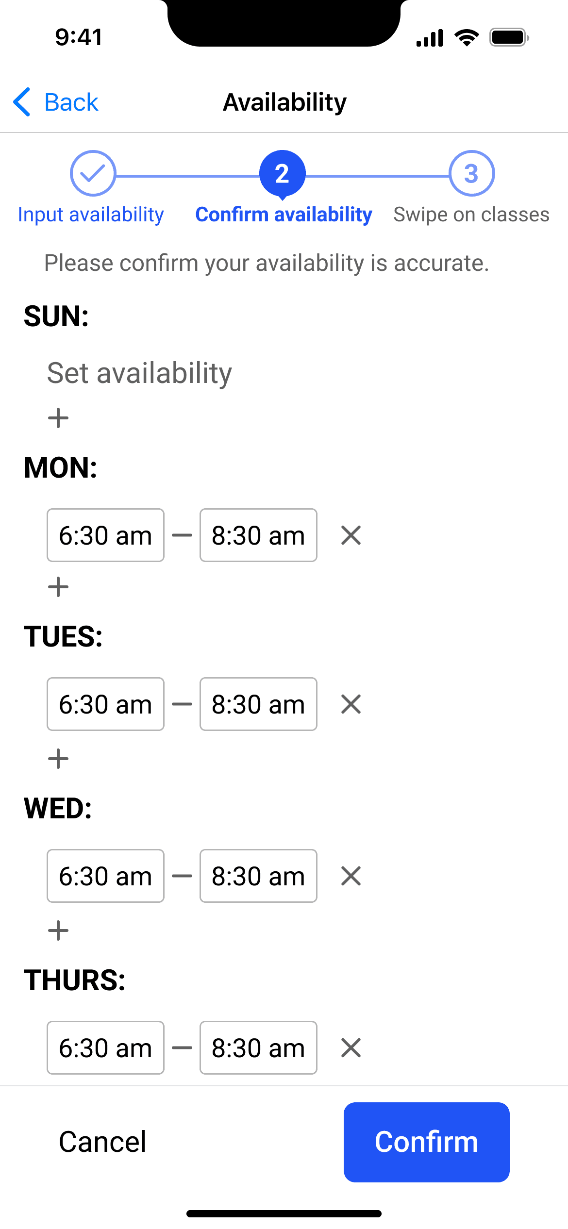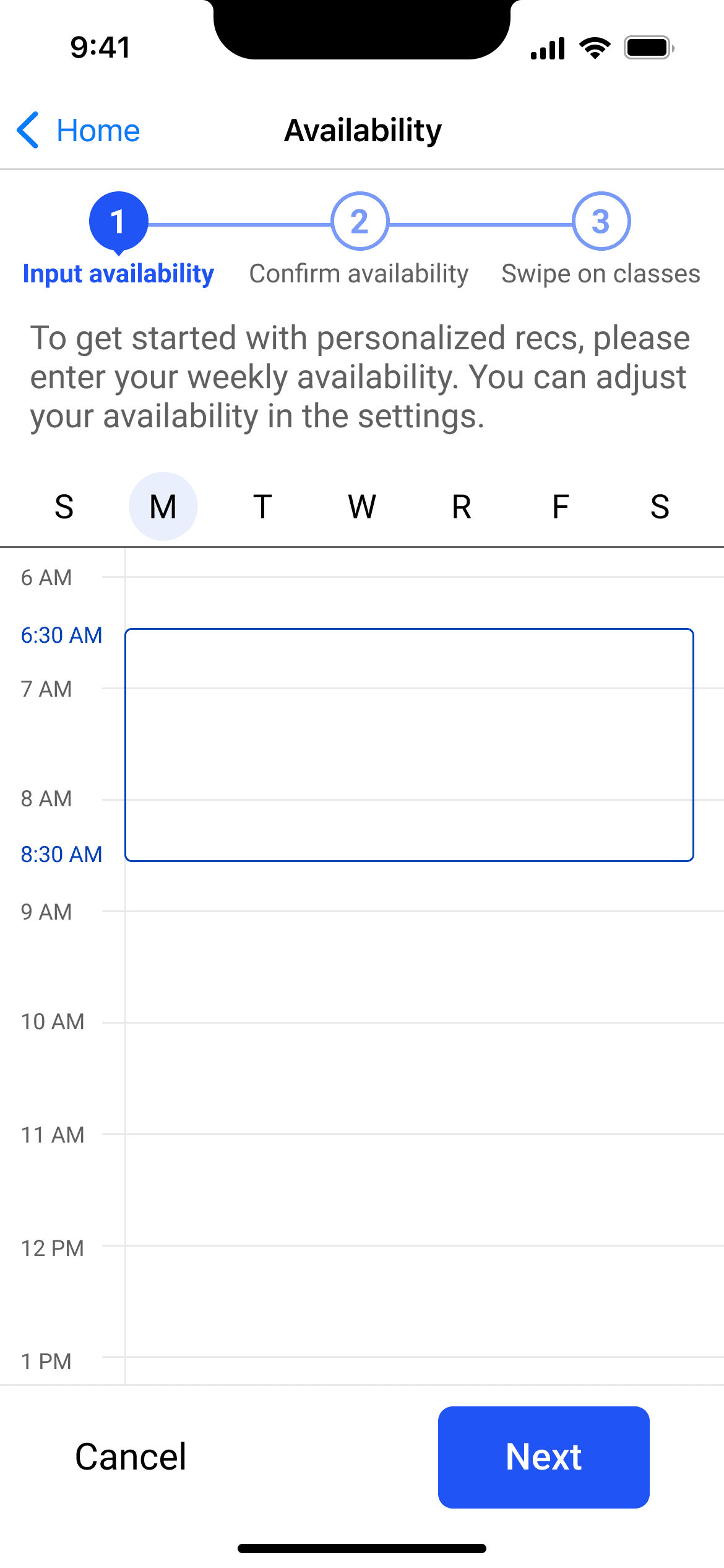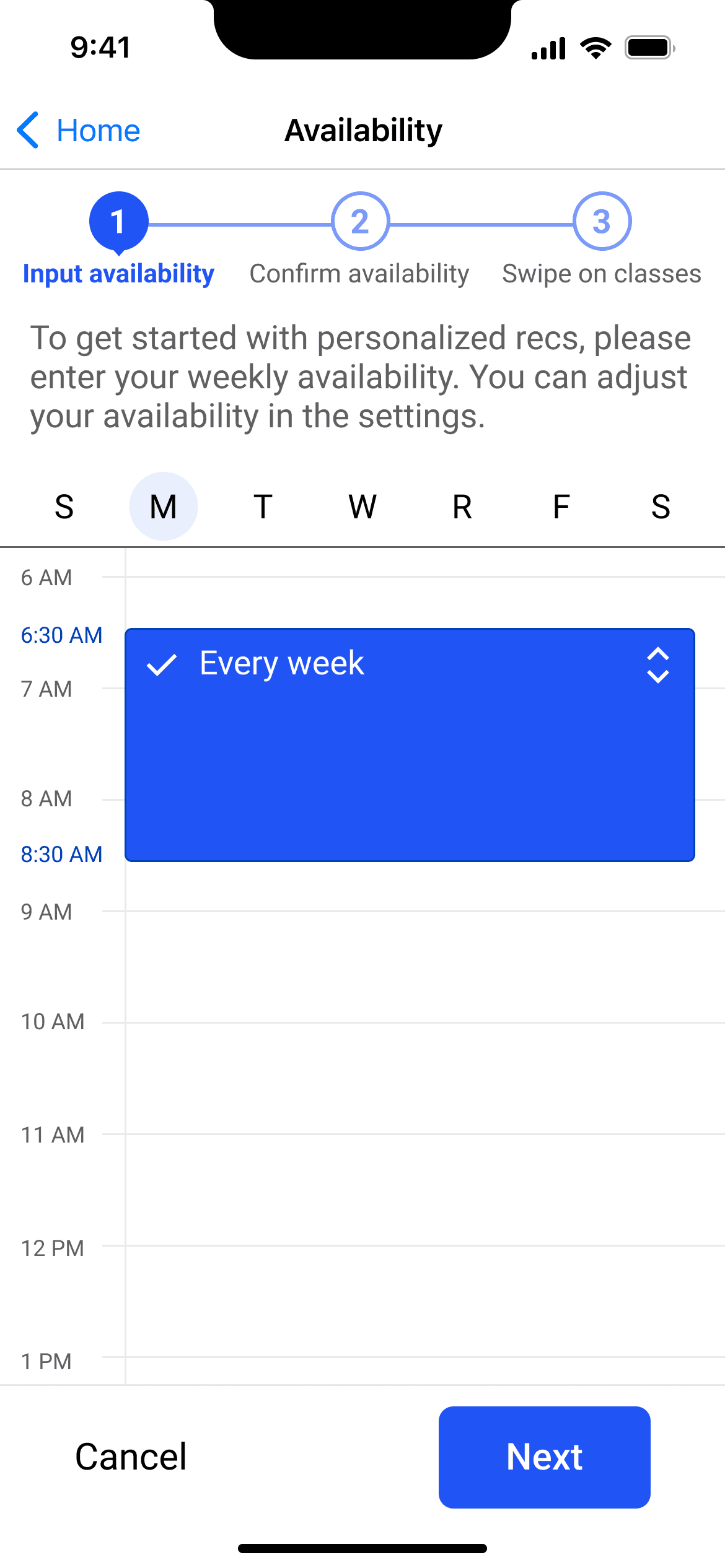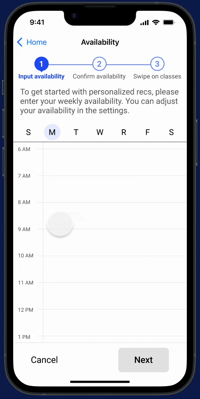 In general, many users felt a sense of disorientation. They didn't necessarily understand why they were inputting availability, and they felt surprised to swipe on classes. Following this feedback, I changed CTA microcopy.