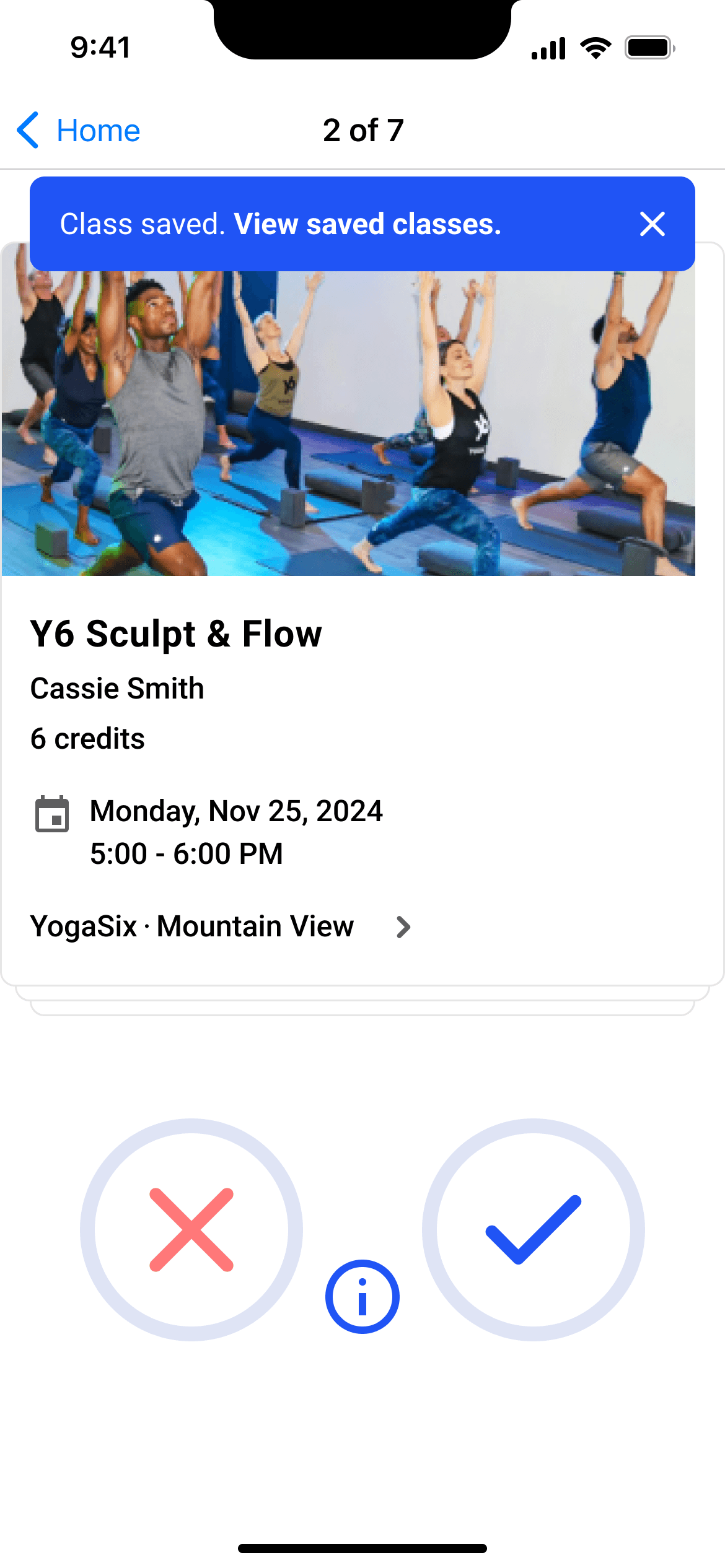 A swipe feature to help people discover new classes and coordinate with friends