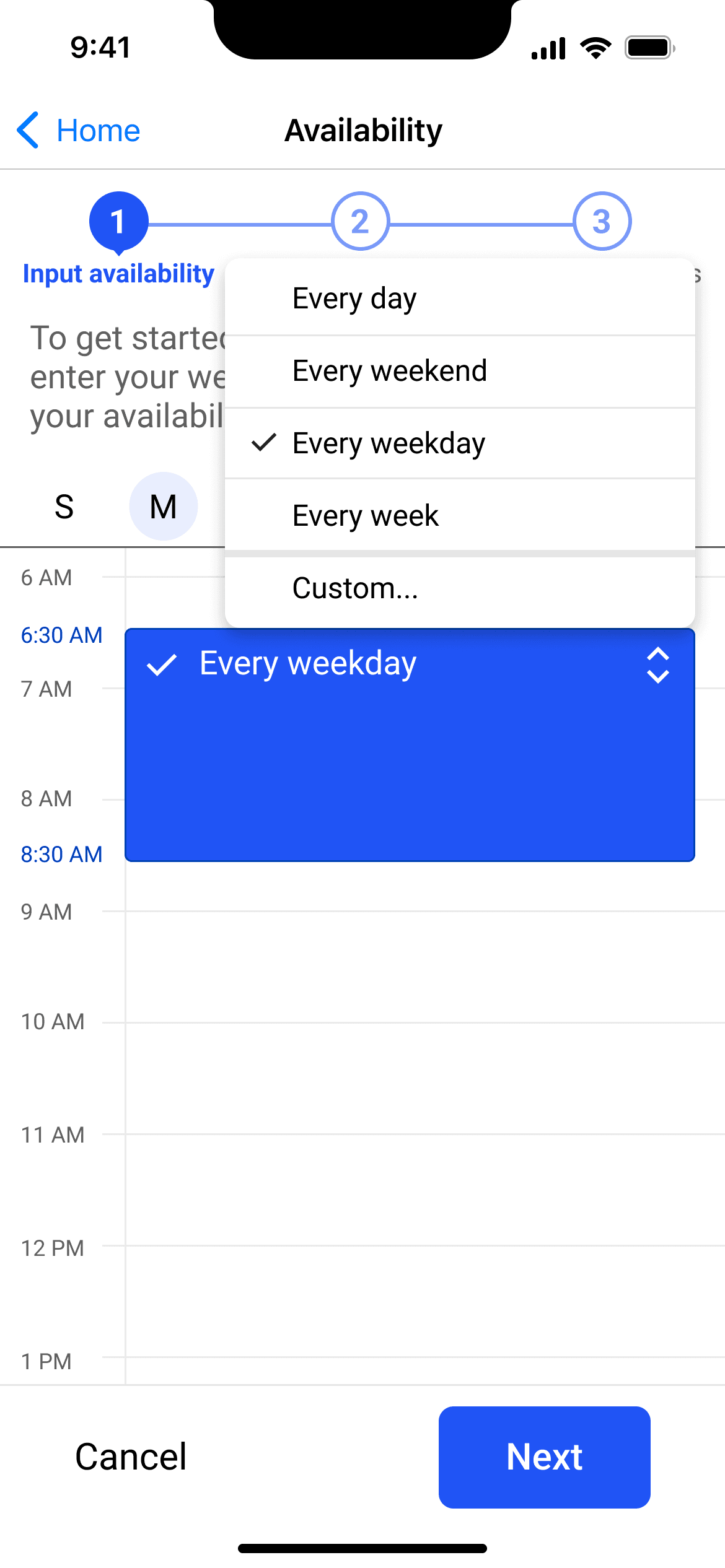 In addition, some users felt restricted when inputting availability. Following this feedback, I added dropdowns to accommodate recurring availability patterns.
